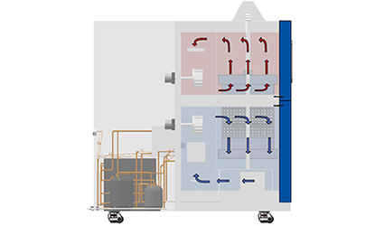 อากาศไปยังห้องช็อตอุณหภูมิอากาศช่วยให้ DUT ในตะกร้าอย่างรวดเร็วสลับระหว่างโซนอุณหภูมิสูง (ถึง220 ℃) และโซนอุณหภูมิต่ำ (ลดลงถึง-75 ℃) ภายใน3วินาทีทำให้ตัวอย่างได้รับการเปลี่ยนแปลงของอุณหภูมิที่รุนแรงมาก