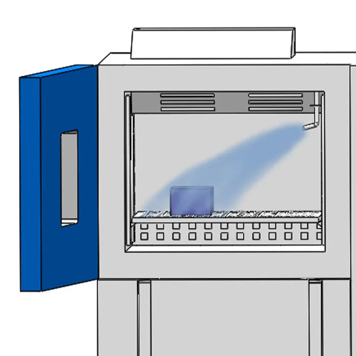 DUT ยังคงอยู่ในห้องทำงานเดียวตลอดการทดสอบช่วยขจัดการถ่ายโอนทางกลระหว่างโซนอุณหภูมิ ช็อกความร้อนถูกสร้างขึ้นเฉพาะโดยควบคุมการสาดน้ำเย็นสอดคล้องกับหลักการทดสอบ K-12ที่อย่างเต็มที่และหลีกเลี่ยงความเครียดทางกลที่ไม่จำเป็น