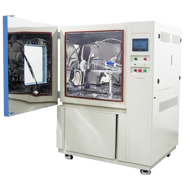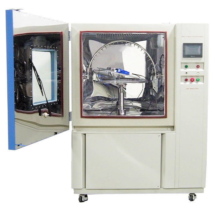อุปกรณ์ทดสอบน้ำเข้าประเมินประสิทธิภาพการกันน้ำของเปลือกผลิตภัณฑ์โดยการจำลองสภาพแวดล้อมที่มีฝนตกและน้ำต่างๆ เป็นไปตาม IEC 60529และ ISO 20653และรองรับการทดสอบการป้องกันน้ำของ IPX1 IPX2 IPX3และ IPX4