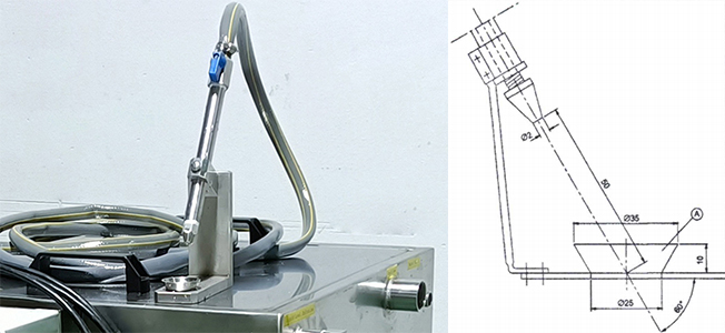 Bowl Ø35 ° มม. (ด้านบน) × Ø25 มม. (ด้านล่าง) × สูง10mm มม. พร้อมหัวฉีด Ø2มม. ที่60นิ้วและความสูงของสเปรย์50มม.-ให้หยดที่สม่ำเสมอเพื่อให้ครอบคลุมสม่ำเสมอ